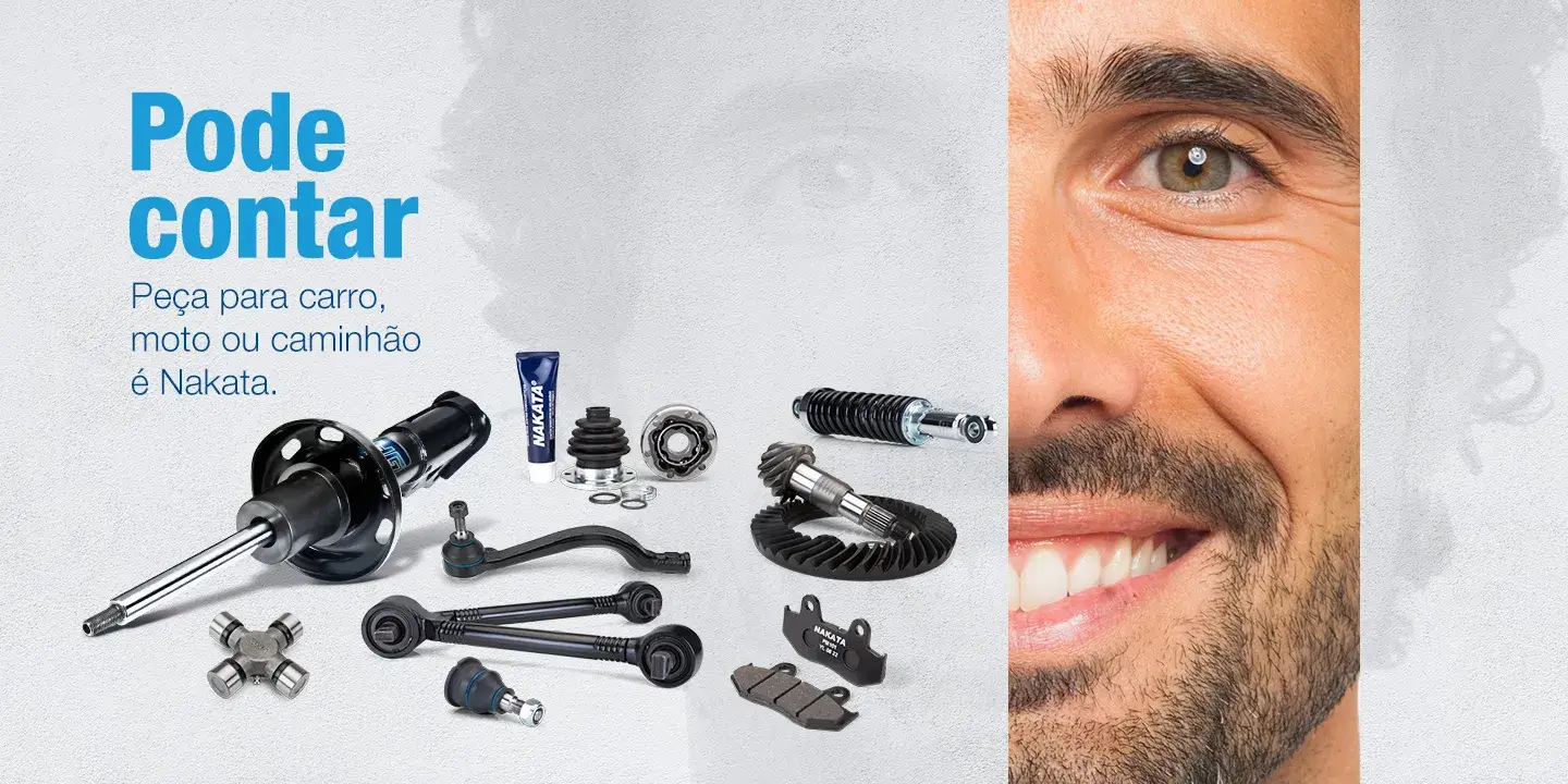 Mais de 70 anos, pioneira em amortecedores pressurizados HG (1984) e portfólio completo em suspensão, direção, transmissão, motor e motopeças. Marca construída em confiança: “Nakata, pode contar”.
